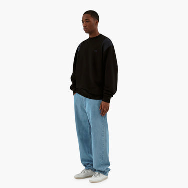 - The crewneck comes with a slightly higher neck and a relaxed fit, finished with ribbed trims and an embroidery logo on the left chest in navy.