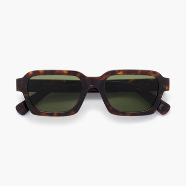 Designed for FW19collection, Caro is a wide, geometricsilhouette that blends 1960s Italianclassicism with 1990s grunge aesthetic. The model features a well-rounded design with a thick, sturdy acetate structure, squared temple tips and angular rims on the lower half of the frame. This version of Caro comes with bottle green lenses and spotted Havana acetate.